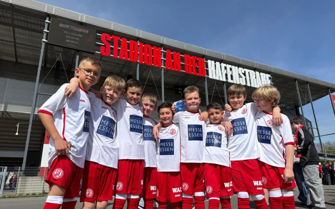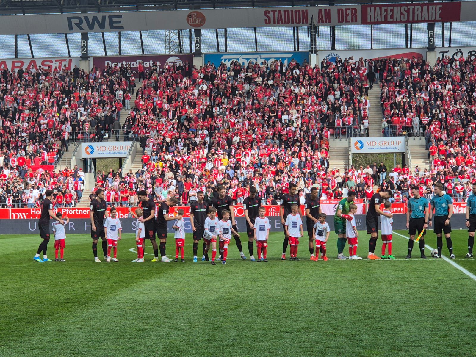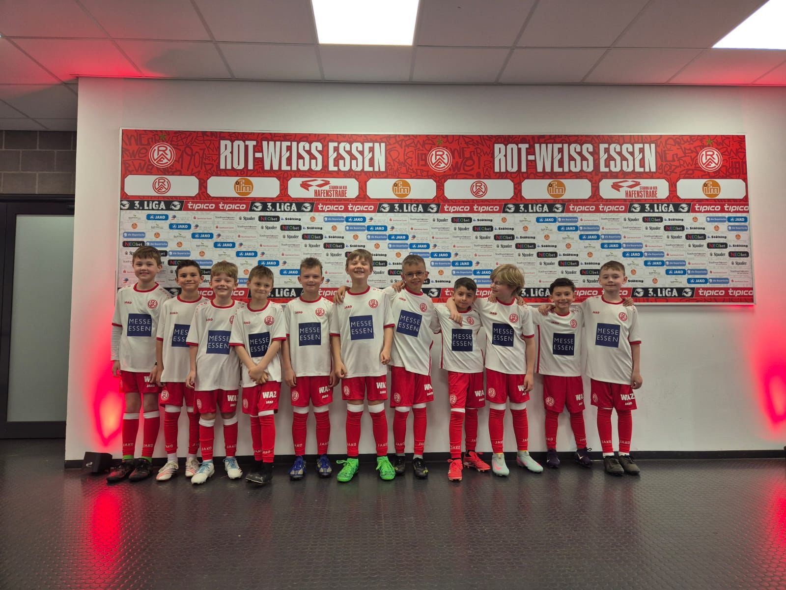 Beim Spiel der 3. Liga zwischen RW Essen und dem FC Ingolstadt durften die HSV-Kicker (auf Einladung von RW Essen und Jako) an der Hand der Ingolstädter Spieler als „Einlaufkinder“ mit auf´s Spielfeld des mit 17517 Zuschauern prall gefüllten Stadion an der Hafenstraße einlaufen.