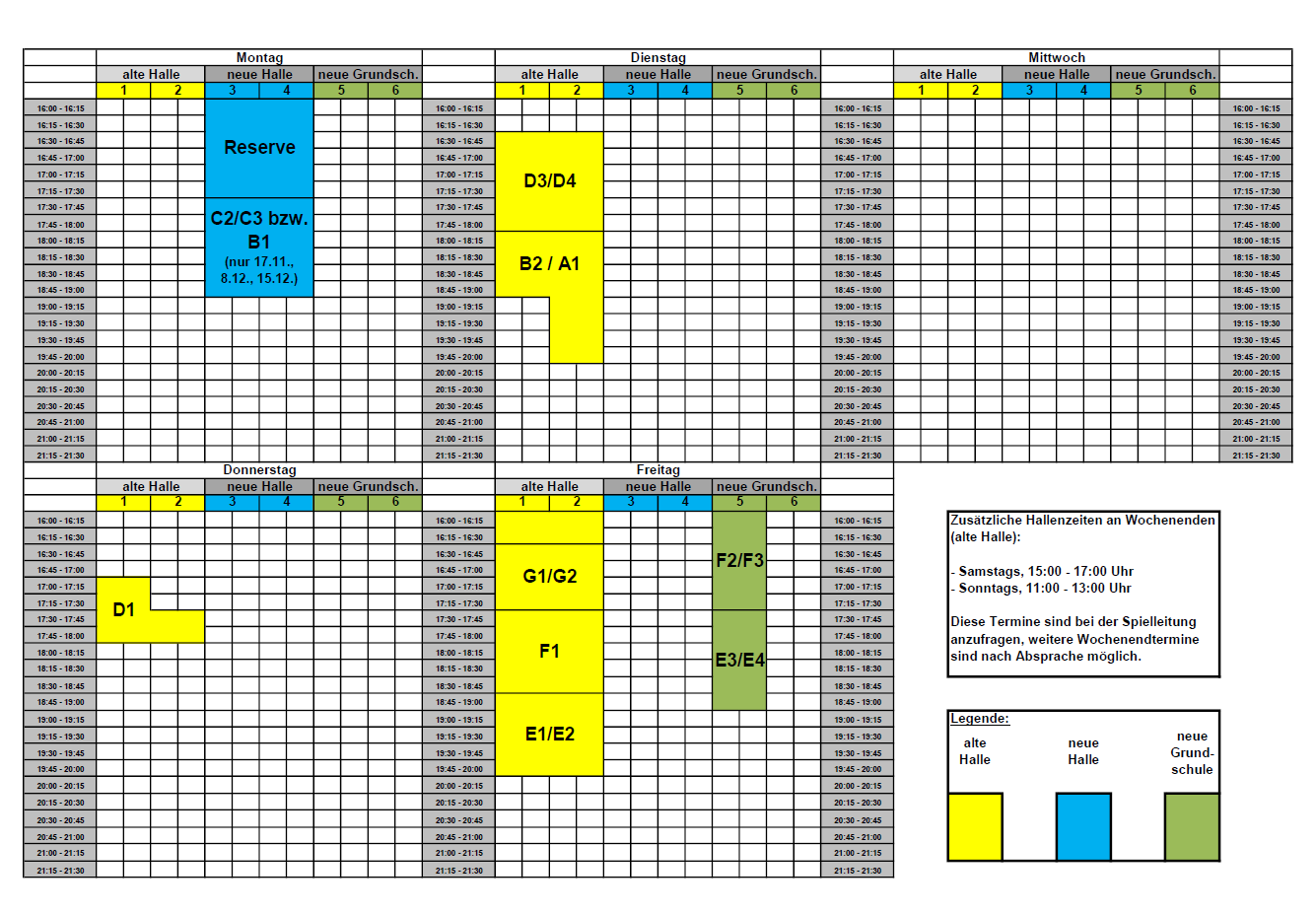 sowie die Hallentrainingszeiten