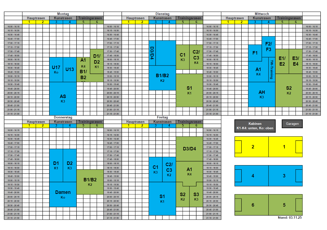 Platzbelegung 2025/2026