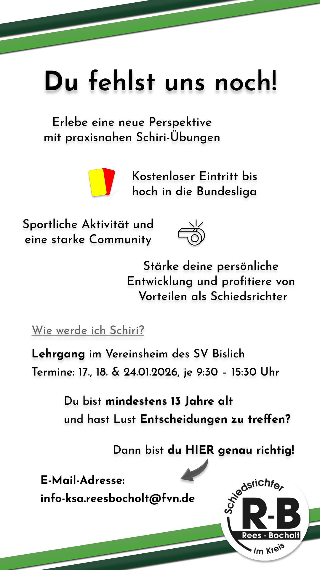 Wenn Du jetzt noch mindestens 13 Jahre alt bist, ist das Deine Chance ein „neuer Schiri“ beim Hamminkelner SV zu werden!
